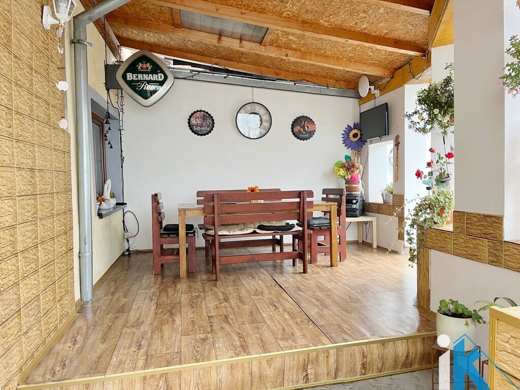 K dispozici je pěkný uzavřený dvorek s bazénem, zastřešená terasa, stodola, skladem a malou dílnou.