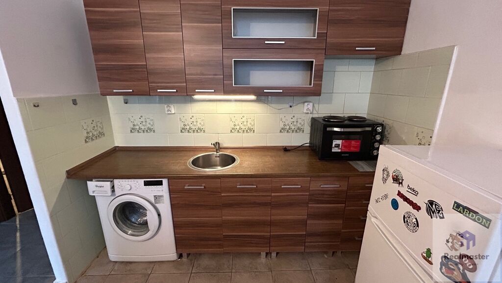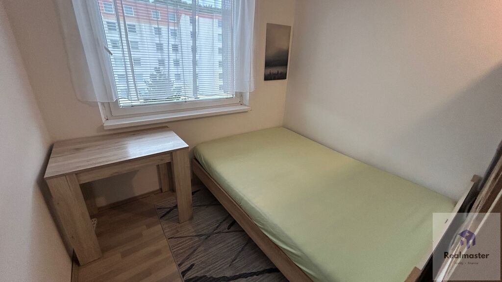 Nabídka podnájmu bytu o velikosti 37m2, v posledním patře panelového domu. Zařízený dvoupokojový byt je vhodný maximálně pro dvě osoby. Je vybaven pěknou koupelnou s hlubokou vanou, kuchyňskou linkou s elektrickým dvou plotýnkovým vařičem, lednicí, mikrovlnnou troubou, dvoulůžkem, dvěma skříněmi, stolkem a stojací lampou.