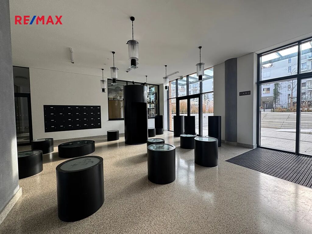 Vstupní chodba s praktickými úložnými skříněmi. Součástí bytu je také sklepní kóje, která poskytuje další úložný prostor, kočárek či kola možno uschovávat v kočárkárně v suterénu domu. V suterénu domu se nachází garážové stání.