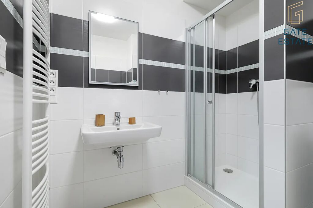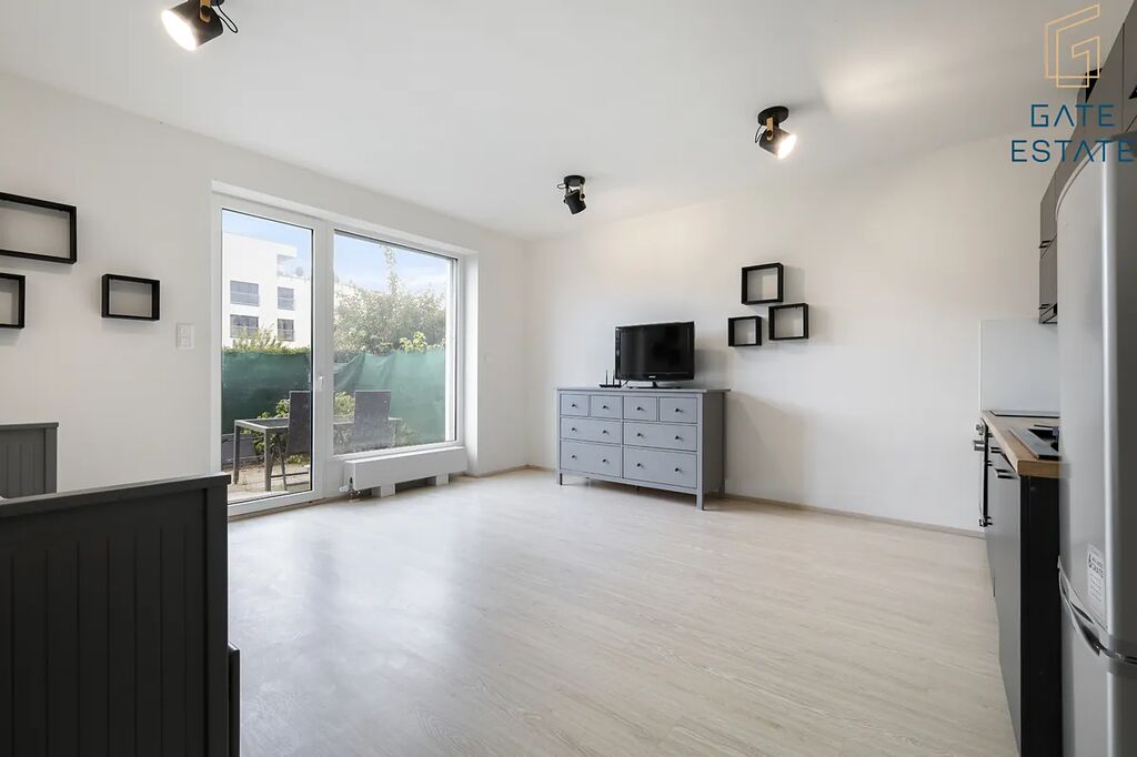 Byt je částečně vybavený: obývací část s rozkládací postelí, kuchyňská linka s vestavěnou lednicí, indukční deskou a digestoří, vstupní chodba se skříní a koupelna se sprchovým koutem a pračkou. Z bytu je vstup na předzahrádku s posezením (stůl a 6 židlí), ideální pro relax nebo letní večeře na čerstvém vzduchu. Samozřejmostí jsou elektricky ovládané venkovní žaluzie, které zvyšují komfort i bezpečnost. K bytu náleží také prostorný sklep o velikosti 8 m².