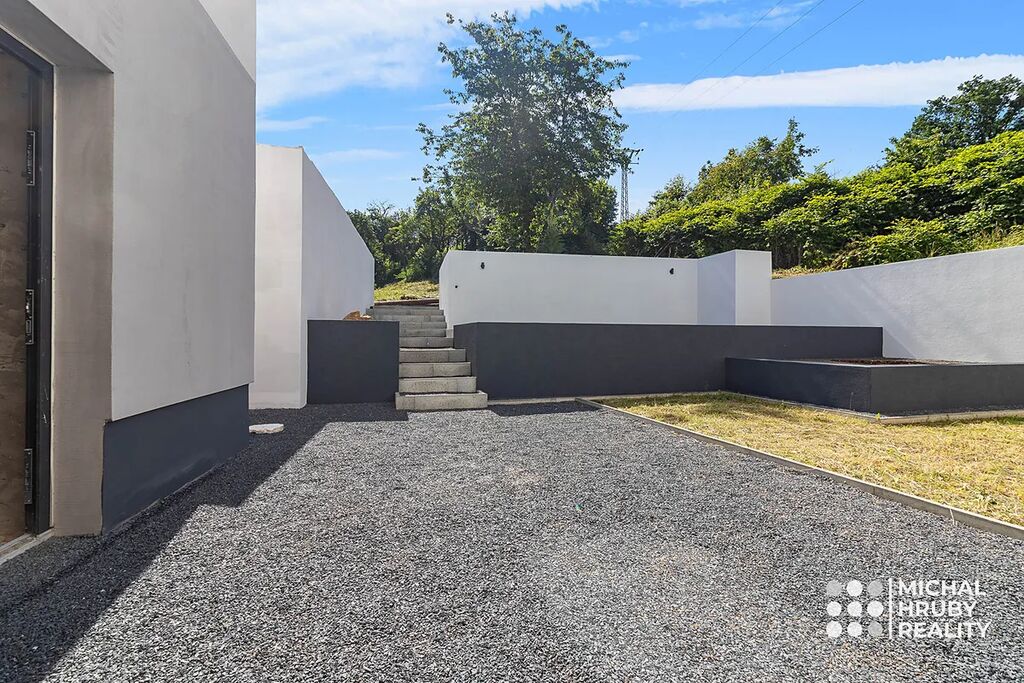 Přímo z obývacího prostoru se dostanete na předzahrádku s vyvýšenou terasou (celkem 160 m2), ideální místo pro venkovní setkávání s rodinou, grilování. K dispozici budete mít také klasickou zahradu (102 m2), která bude pouze vaše (oba byty v domě mají své vlastní zahrady). Pro skladování zahradní techniky a dalších věcí můžete využívat vedlejší přístavbu. Pokud byste toužili po větším kusu běžné zahrady, můžete se případně domluvit se sousedy, kteří mají skoro 1.400 m2.