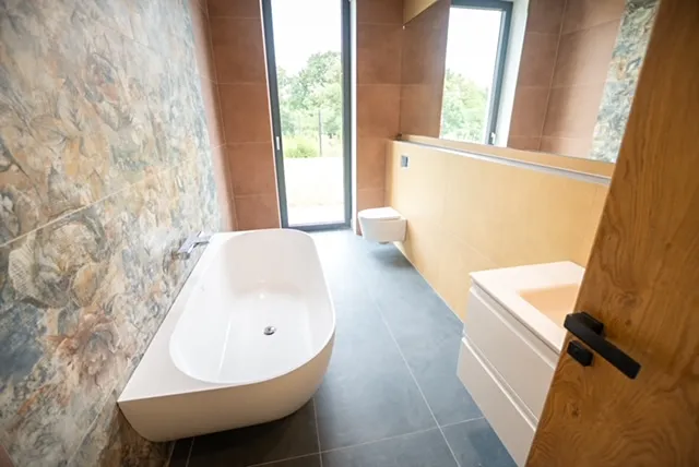 Ke standardu bytu patří tepelné čerpadlo, velkoformátová okna s elektrickou žaluzií, reflexní folií, podlahové vytápění.