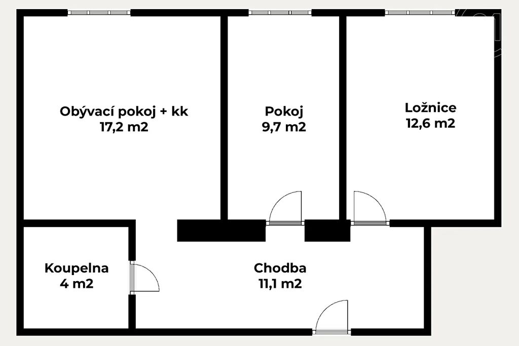 • Ve všech místnostech nové interiérové dveře a obložky