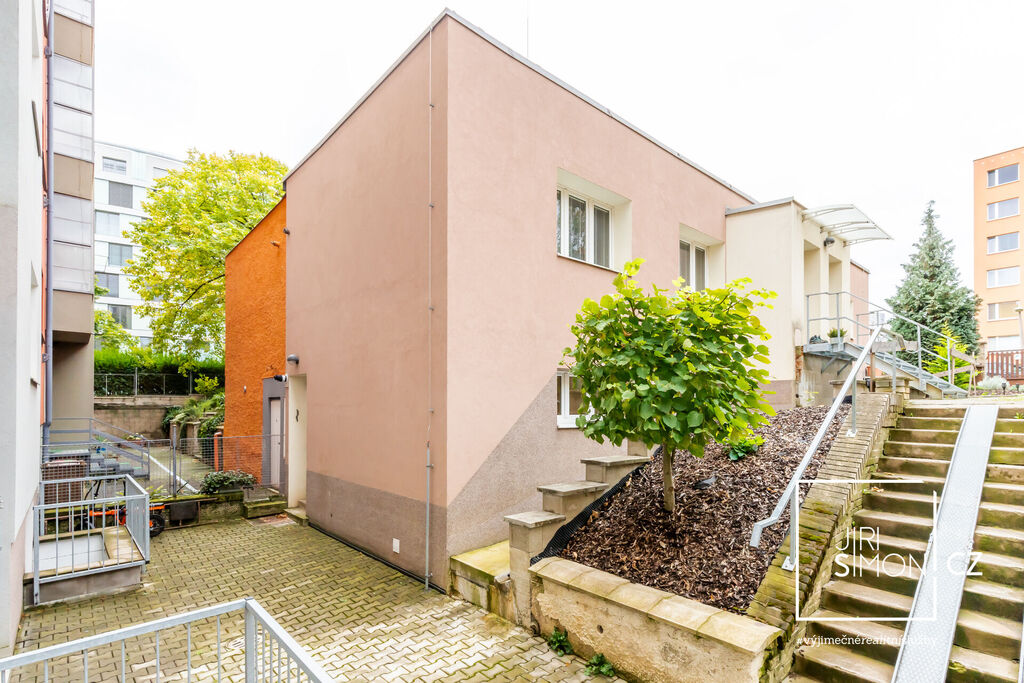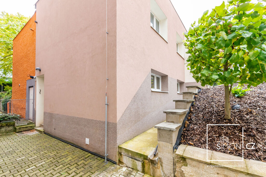 Jedná se o malý objekt s čtyřmi byty, postavený ve vnitrobloku. Tento byt je umístěný v přízemí tohoto domu a má svůj vlastní vchod a je možné využívat část pozemku před bytem. Do bytu je možné jít přes bytový dům nebo zadním vchodem ze zahrady.
