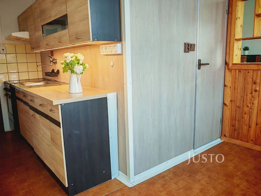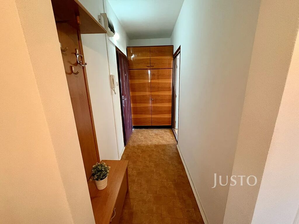 Prostorná předsíň s úložným prostorem. Obývací pokoj je dostatečně velký a má k dispozici balkon, ideální pro ranní kávu nebo večerní posezení. Kuchyně s linkou, elektrickým sporákem s troubou a velkou jídelnou, dále dvě samostatné ložnice, šatna nebo komora pro uložení věcí. V koupelně je vana a umyvadlo. WC je řešeno samostatně. Na chodbě je další oddělená komora pro uložení věcí.
