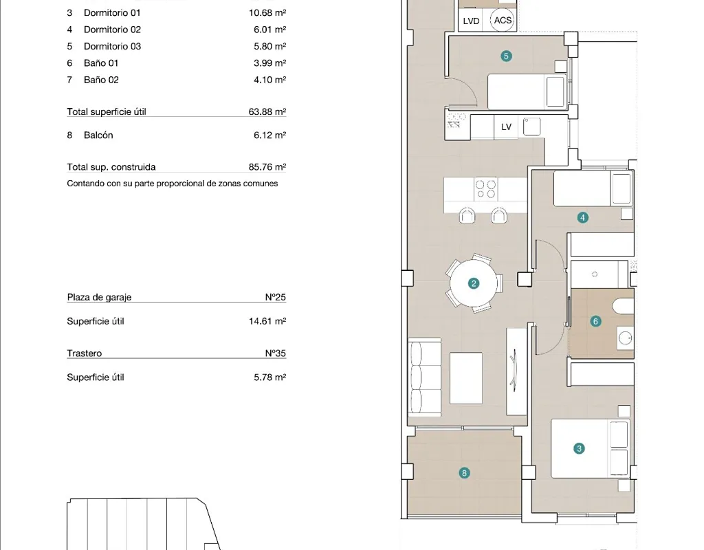 Objevte tento exkluzivní rezidenční komplex novostaveb v Jacarille, který nabízí 37 moderních apartmánů navržených s důrazem na pohodlí a komfort. Vyberte si z dispozic se 2 nebo 3 ložnicemi, přičemž k dispozici jsou: