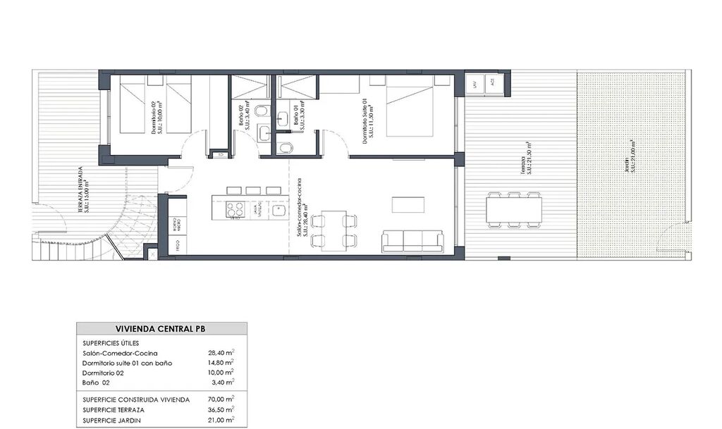 Díky skvělé poloze si můžete užívat naprostý klid a soukromí, zatímco pláže Orihuela Costa a město Torrevieja s širokou nabídkou zábavy, gastronomie a obchodů jsou vzdálené pouhých 7 km.