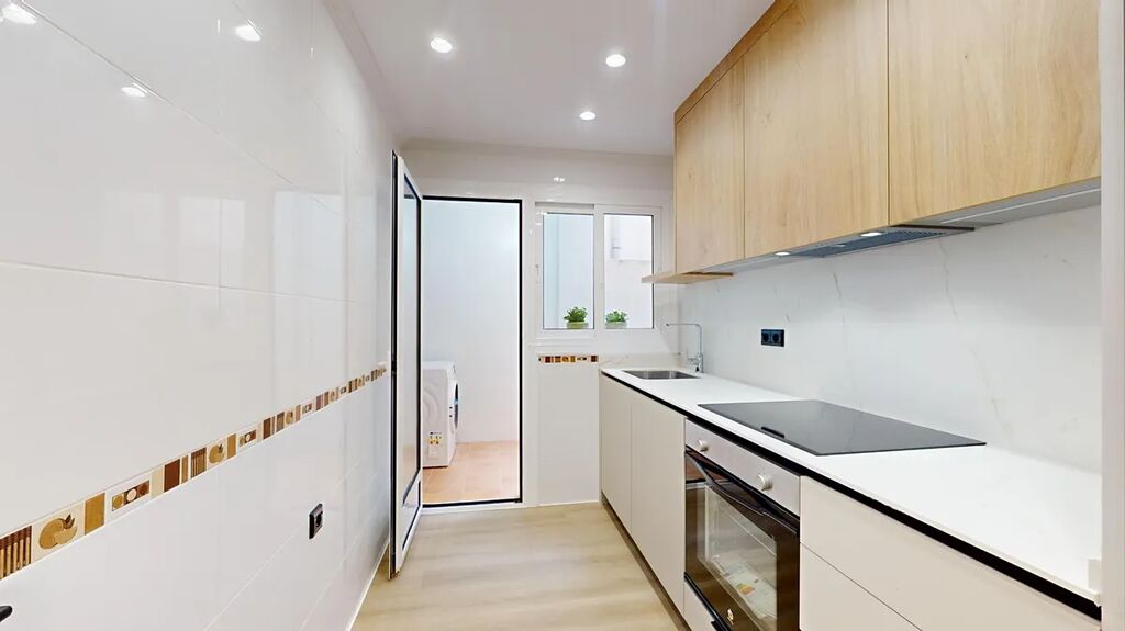 Plně vybavená kuchyň s indukční varnou deskou, elektrickou troubou a podomítkovým odsavačem par značky BALAY