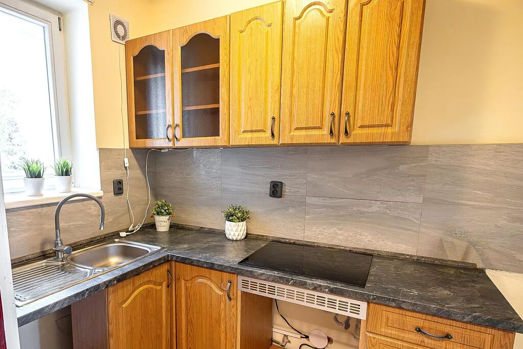 - oddělená kuchyně s kuchyňskou linkou - je zde indukční deska, po dohodě bude dodána nová myčka a el. trouba, přip. i starší lednice