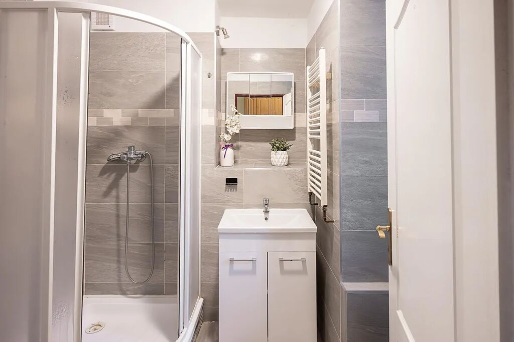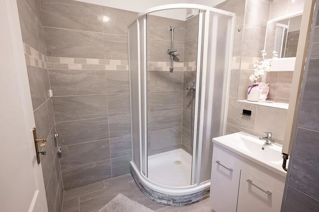- koupelna se sprchovým koutem a WC (přípojka na pračku, pračka zde není)