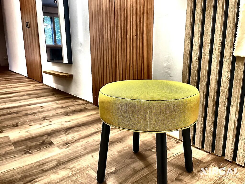 Tento byt v sobě spojuje klasickou eleganci s nejnovějšími trendy moderního designu. Byly zde zachovány hodnoty klasických, vysoce kvalitních materiálů – masivní dřevo, růžový buk a renovované parketové podlahy, které vytvářejí pocit noblesy a nadčasovosti. Současně moderní stylová řešení přinášejí svěží dech současnosti a činí byt naprosto trendovým.