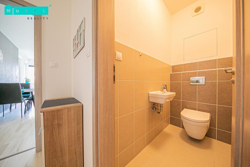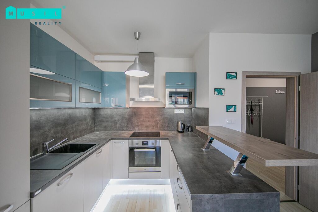 Nabízíme pronájem novostavby krásného cihlového bytu o dispozici 3+kk s prostornou terasou nacházející se v bytovém domě na ulici Aloise Rašína v Olomouci. Reprezentativní prostorný byt o výměře cca 75,00 m2 se nachází ve třetím patře domu s výtahem. Vkusná kuchyňská linka vyrobena na míru je vybavena veškerými spotřebiči, novému nájemníkovi bude k dispozici: lednice s mrazákem, indukční varná deska s digestoří, myčka nádobí, mikrovlnná a elektrická trouba. Na kuchyňský kout plynule navazuje jídelní část a obývací pokoj. Koupelna je vybavena vanou a umyvadlem. Samostatné WC. Pračka a sušička nacházející se ve vstupní chodbě nemovitosti, může po dohodě také zůstat pro následné užívání. Prostorná vstupní chodba nabízí místo pro úložné prostory. Ložnice zůstává vybavena šatní skříní. Dětský pokoj bez zařízení. Nový nájemník určitě ocení terasu o výměře cca 20 m2, která nabízí místo pro odpočinek po náročném pracovním dni. Na oknech jsou instalovány elektrické žaluzie, které zajistí dostatek stínu a chládku při horkých letních dnech. K nemovitosti je k dispozici velká komora, nacházející se přímo naproti bytu. Jedná se o velmi pěkné rodinné bydlení, které čeká na své nové nájemníky. Výborná lokalita obklopená zelení, v těsné blízkosti nákupního centra OC City a Globus, MHD v dosahu. Venkovního parkovací stání za příplatek 1.000Kč/měsíčně. Cena: 20.900 Kč + energie 3056,- Kč / měsíc. Vybírána kauce ve výši dvou měsíčních nájmů. Volné od 31.11.2025.