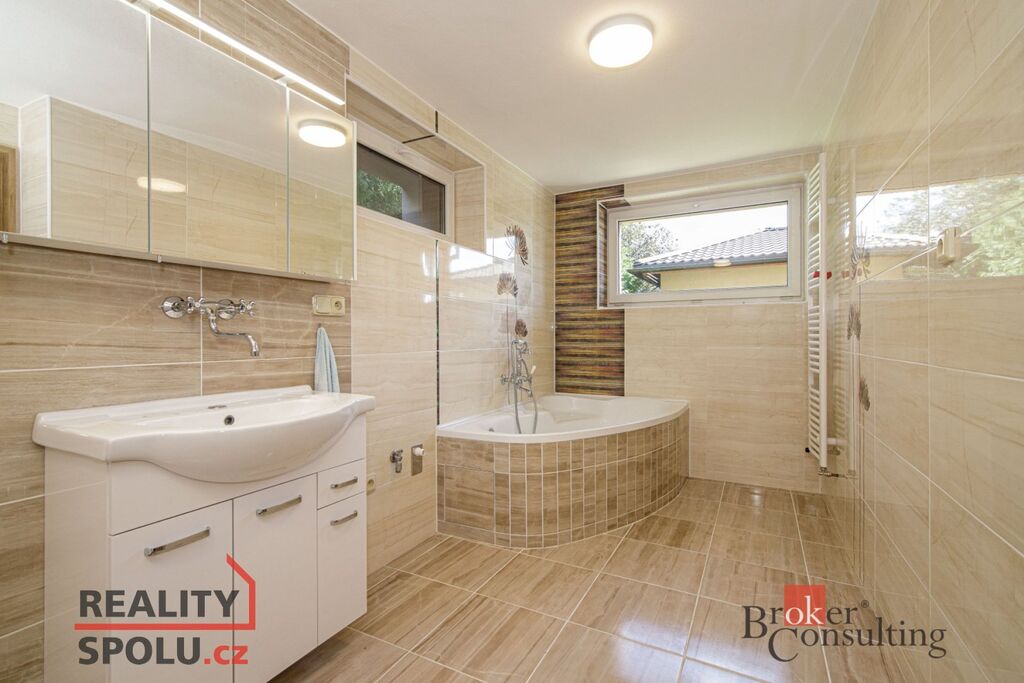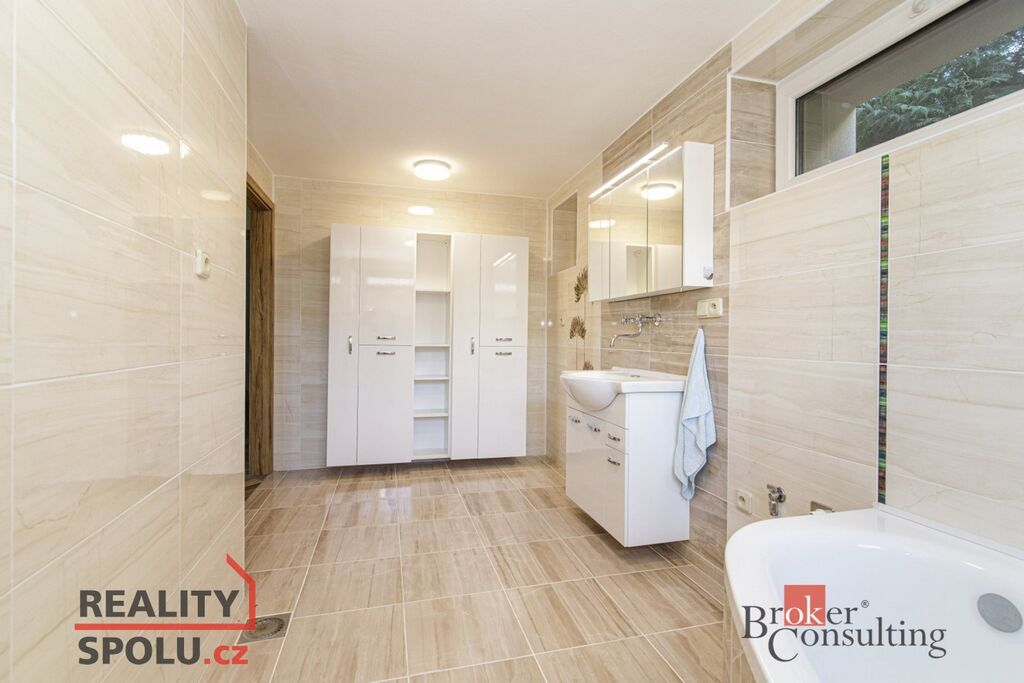 Dům je celkově podsklepen. Také sklepní prostory jsou po celkové rekonstrukci, včetně všech rozvodů, omítek a podlah. Slouží zejména jako technické zázemí, včetně kotle, tepelného čerpadla a bateriového úložiště. Pro milovníky vína pak nabízí prostory pro zřízení vinného sklepa. Naopak střecha domu je plechová, a její větší část pokrývají solární panely.