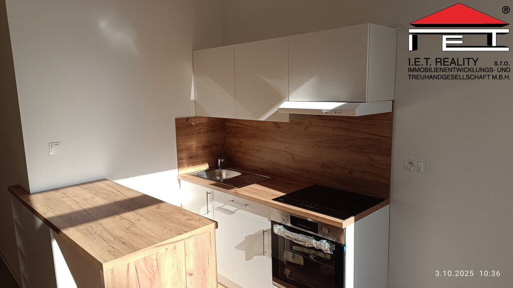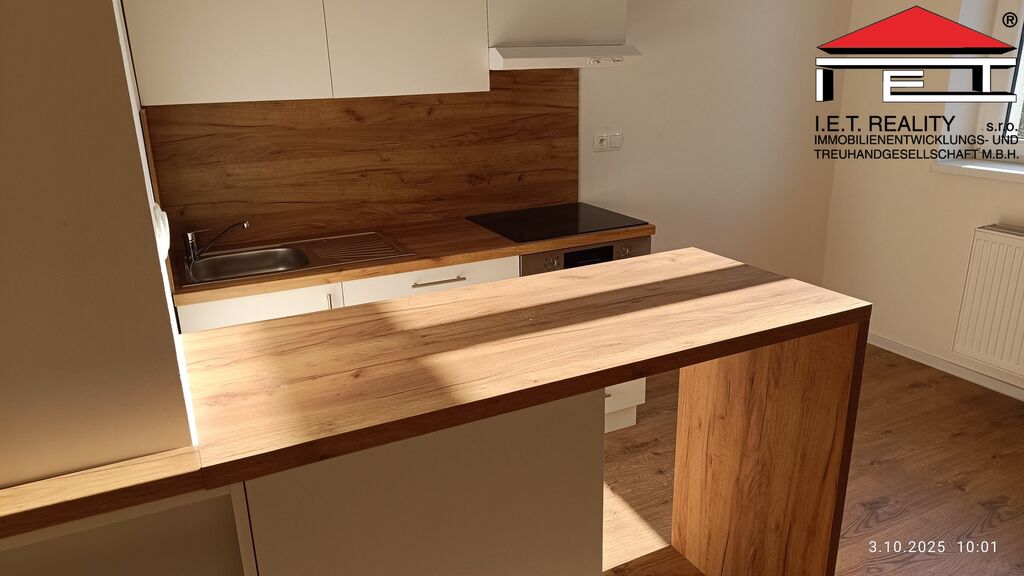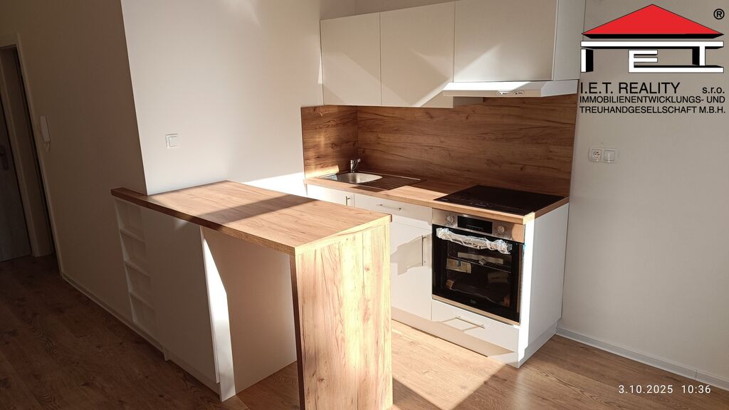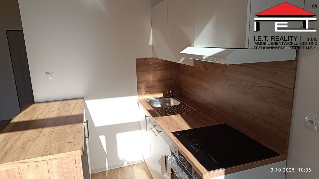V bytě je moderní kuchyňská linka s el. varnou deskou a troubou..