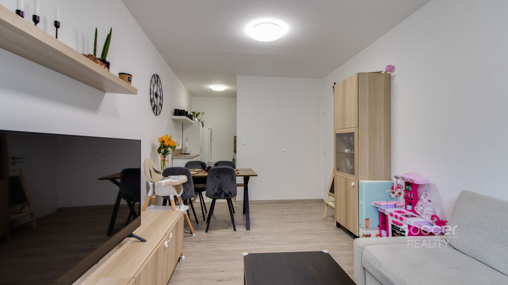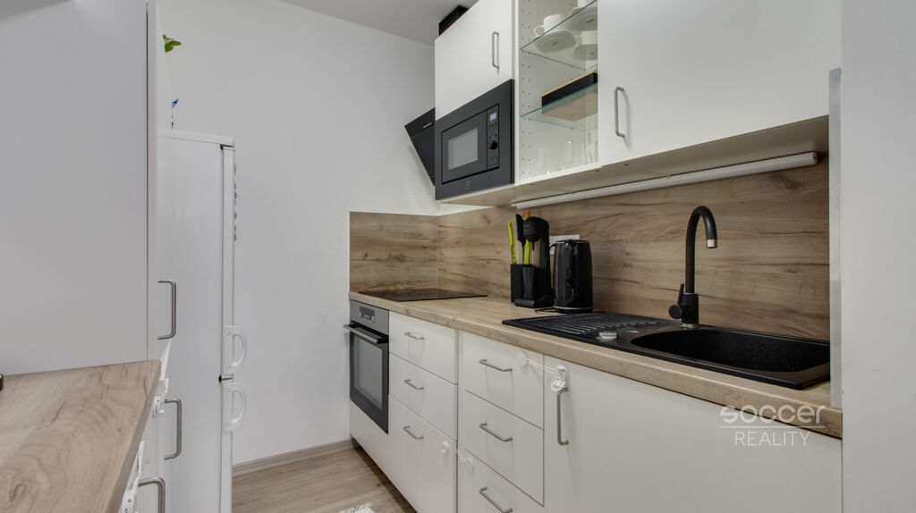 Byt prošel kompletní rekonstrukcí. V bytě nechybí vestavěné skříně na chodbě pro maximální efektivitu místa, moderní kompletně vybavená kuchyň a koupelna se sprchovým koutem a pračkou. Nábytek v obývacím pokoji je na dohodě.