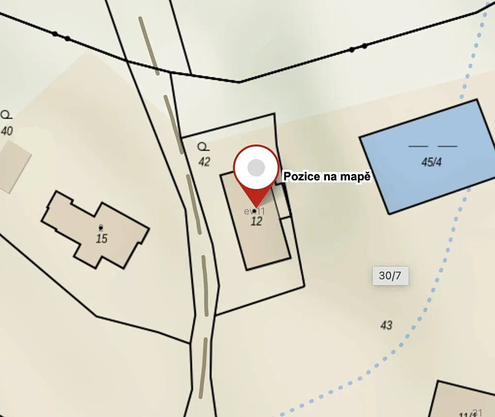 Nemovitost se nachází v rezidenčně-rekreační oblasti v sousedství lesa a dalších rodinných domů se zajištěným příjezdem po nezpevněné obecní cestě.