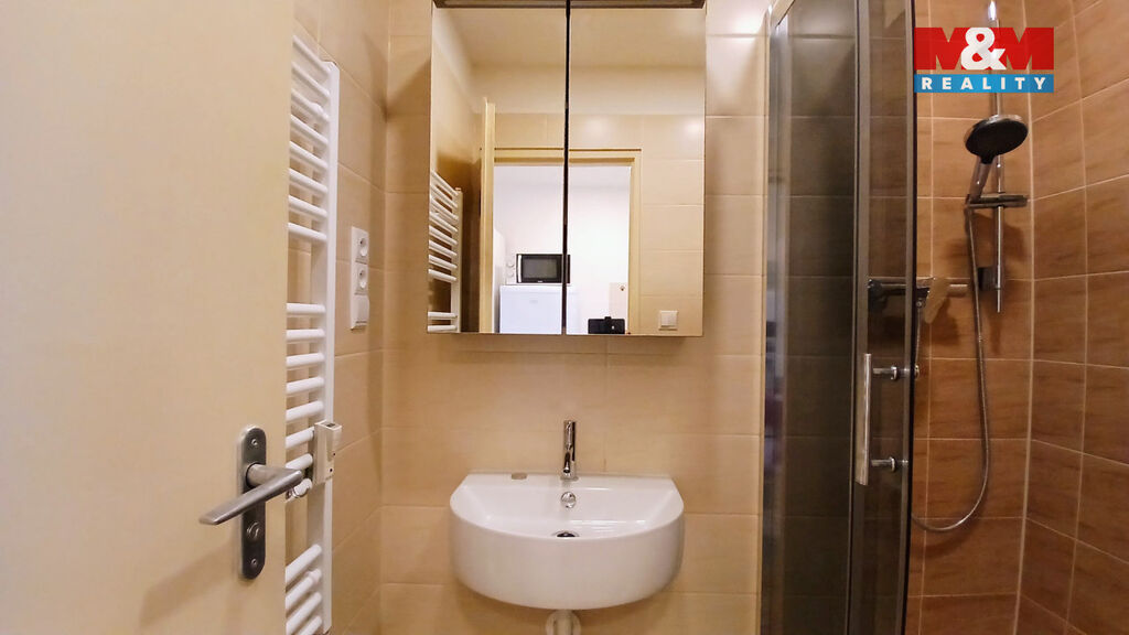 Celý byt prošel rekonstrukcí, má novou koupelnu vybavenou umyvadlem, skříňkou se zrcadlem, sprchovým koutem. Toaleta je samostatně, dále komora.