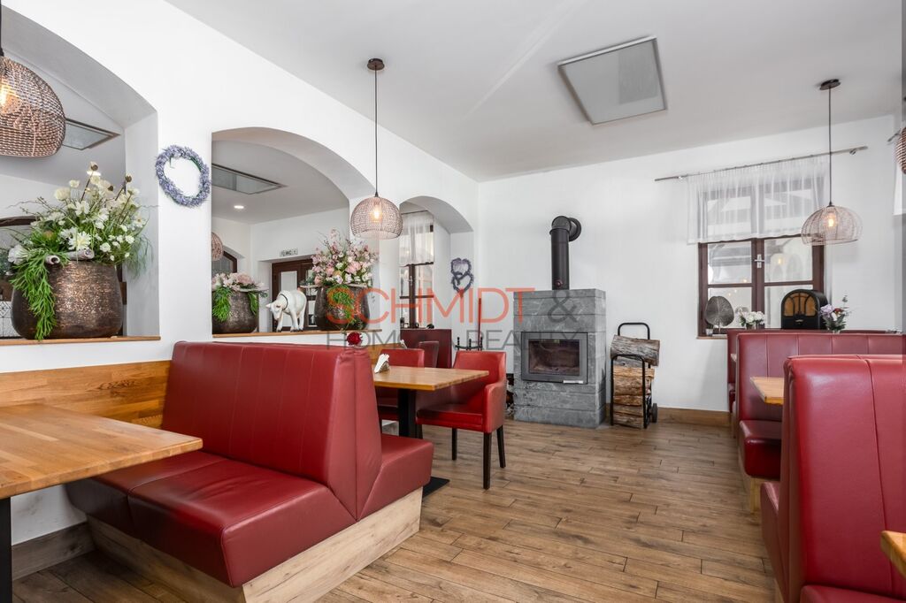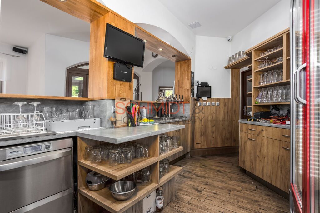 Restaurace je pronajímána plně vybavená – kuchyňské linky, technologie, výčepní zařízení, nábytek, gastro inventář i barové zázemí.