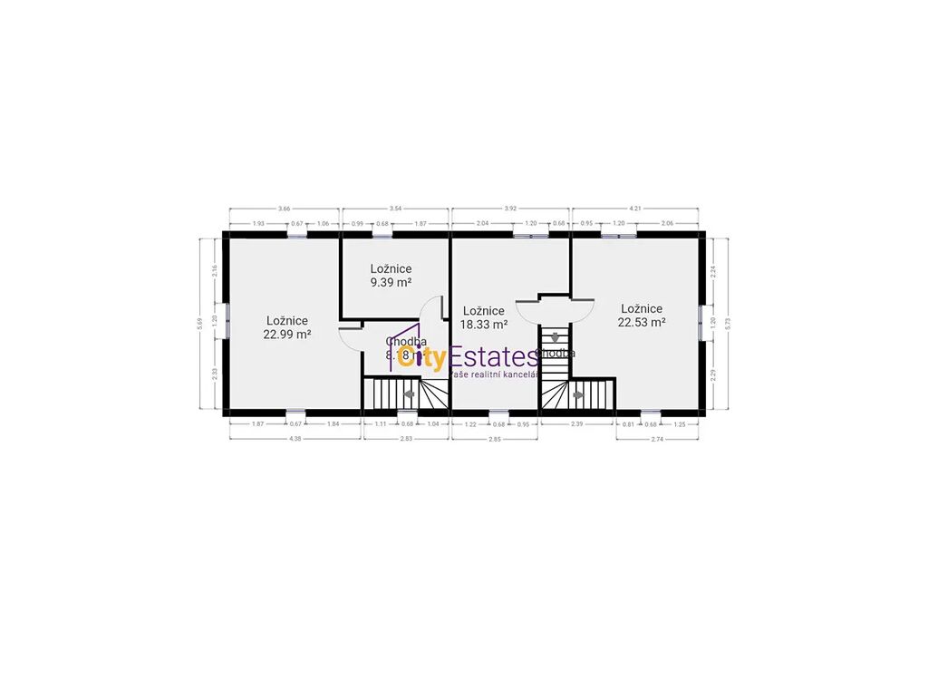 Užitná plocha bytů je celkem 168 m2, garáž má 38m2, celková užitná plocha je 206m2.