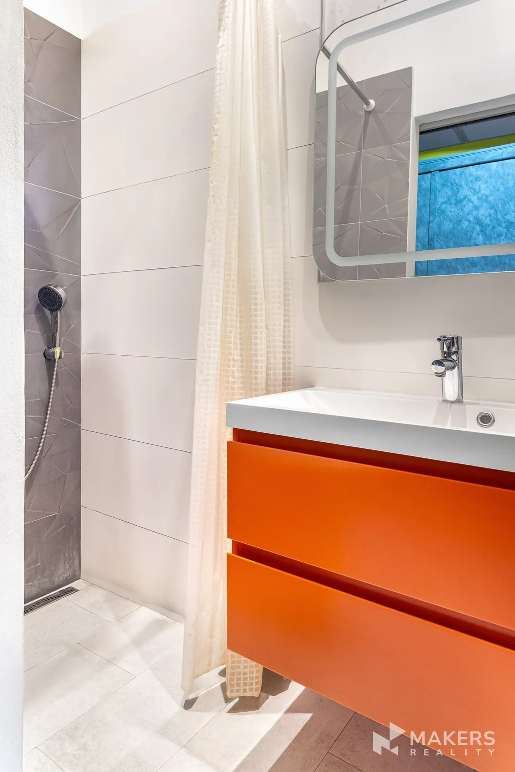 Byt o podlahové ploše 46 m² nabízí funkční dispozici se dvěma oddělenými místnostmi. Obývací pokoj je propojen s kuchyňským koutem a těší se jihovýchodní orientaci s výhledem přímo na ikonickou Žižkovskou věž. Druhá místnost nabízí severovýchodní orientaci s výhledem na park Parukářka.. K dispozici je moderní koupelna se sprchovým koutem a samostatné WC. Součástí bytu je také praktická sklepní kóje.