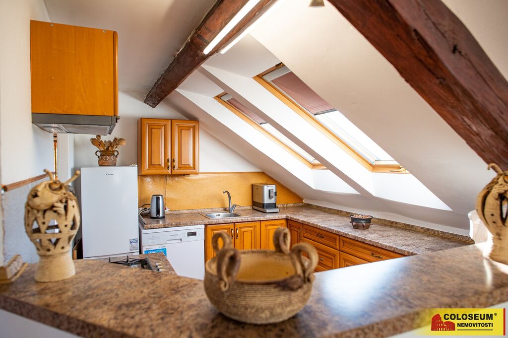Exkluzivně Vám nabízíme prostorný a světlý podkrovní byt s terasou, zahradou a krásným výhledem na zámek v centru Moravského Krumlova.