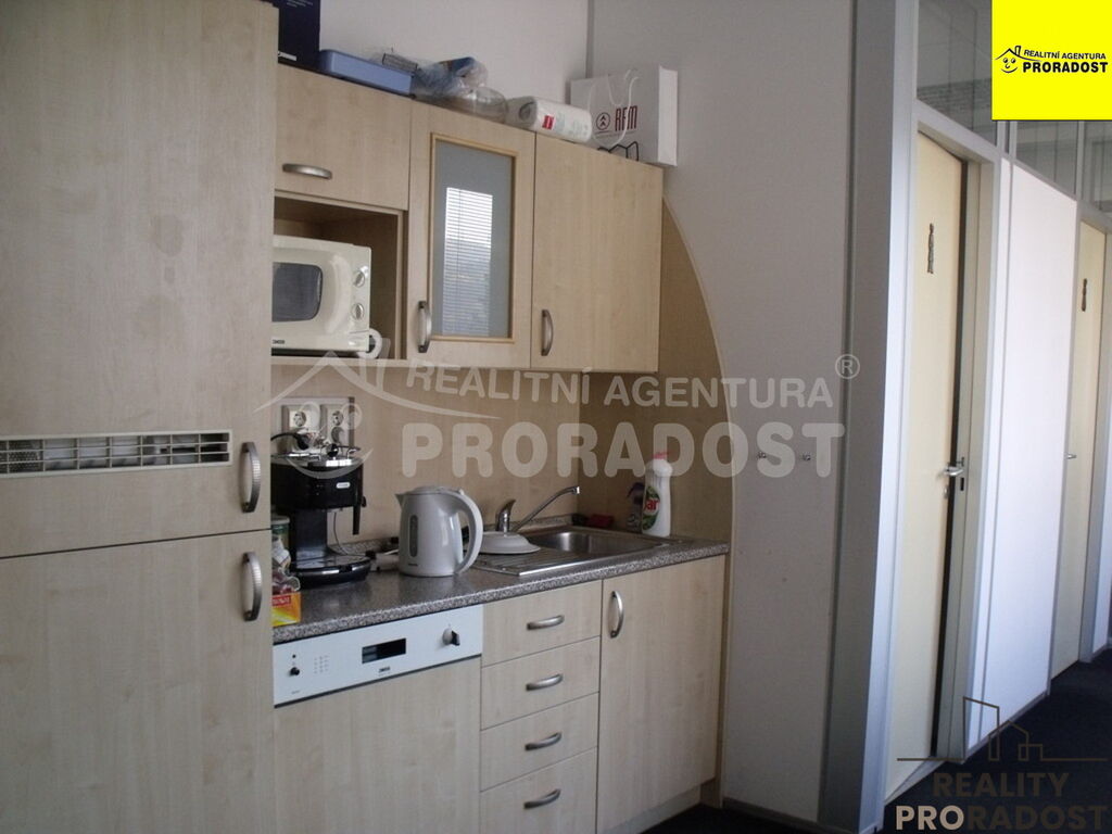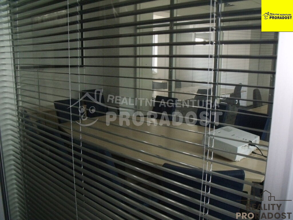 Součástí je i sdílené sociální zařízení a kuchyňka. Vše je ve velmi dobrém stavu, kanceláře dostatečně prosvětlené, okna osazena žaluziemi.