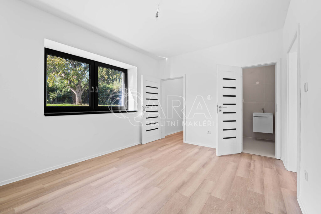 V přízemí se nachází prostorný obývací pokoj, kuchyně s přípravou pro novou linku dle vašich představ, ložnice s vlastní šatnou a koupelnou se sprchovým koutem, dále vstupní hala a samostatná toaleta.