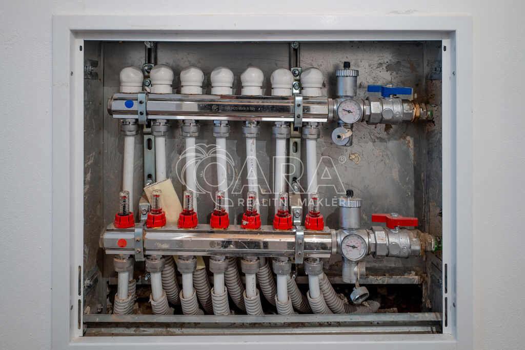 Veškeré technologické zázemí je instalováno ve sklepě. K domu také náleží samostatná garáž.