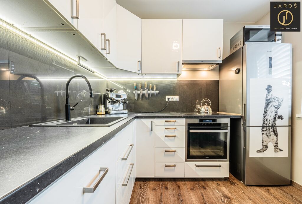 Součástí bytu je klimatizace, nová okna s elektrickými venkovními žaluziemi, nové interiérové i vstupní dveře a zděný sklep. Parkování je možné přímo před domem. V okolí se nachází dětské hřiště, škola, školka, MHD i vlakové spojení. Díky své poloze a vybavení je byt ideální jak pro rodinné bydlení, tak i jako investiční příležitost.