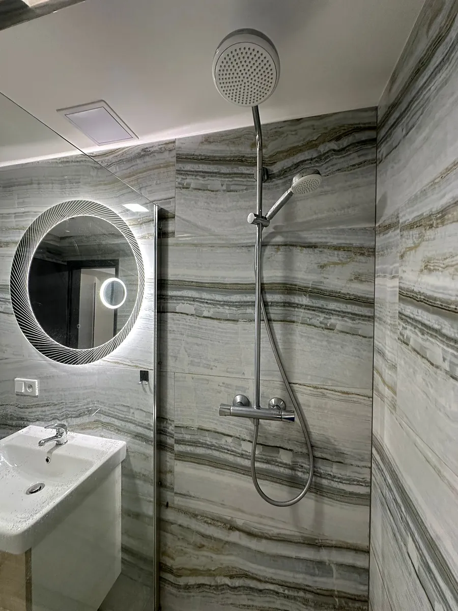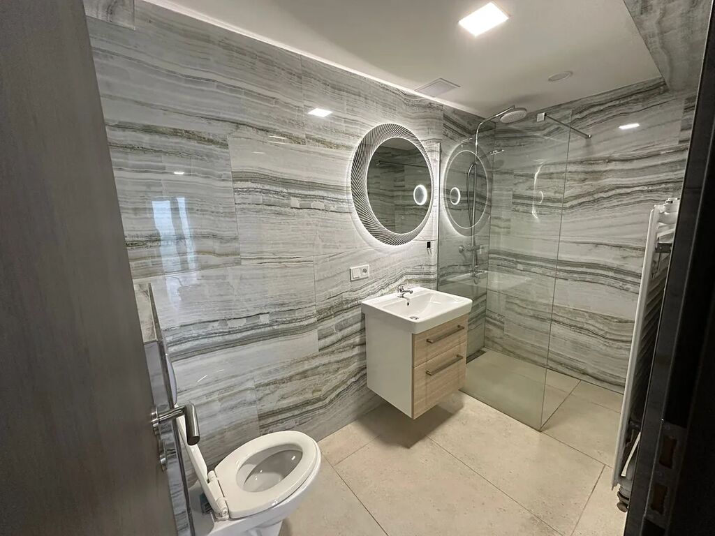 V bytě se nachází vstupní chodba, kuchyň, obývací pokoj, ložnice, tech. místnost, koupelna se sprchovým koutem a WC.