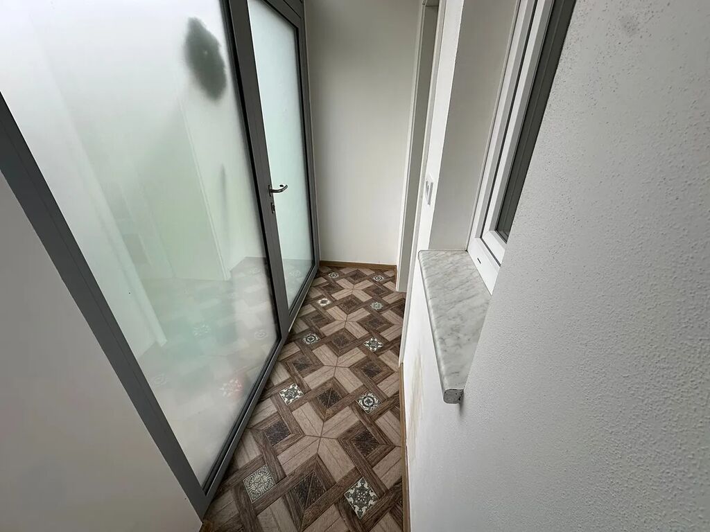 V bytě je položena dlažba a v pokojích plovoucí podlaha.