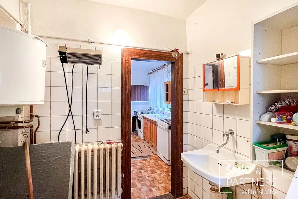 Naše kancelář zprostředkovává prodej rodinného domu určeného ke kompletní rekonstrukci, který disponuje úžasnou a velkou zahradou. Nemovitost se nachází v atraktivní lokalitě obce Nové Jirny. Plocha pozemku o 1319 m2 má mírně lichoběžníkový tvar a v celé délce zadní části přímo sousedí s Klánovickým lesem. Zastavěná plocha jednopodlažním domem o dispozici 2+1 je 110 m2 a satelitní stavba garáže s navazujícími technickými a úložnými prostory činí 52 m2. Dům je napojen na obecní vodovod, kanalizaci, elektřinu a plyn. Pro rekonstrukci či stavbu nového domu, v případě demolice stávajícího, není nutné se obávat současné stavební uzávěry obce z důvodů malé kapacity čistírny odpadních vod. Dům obklopuje příjemně působící zahrada, která kombinuje okrasné a užitkové části s množstvím již dospělých a vzrostlých keřů a stromů. Čistá plocha zahrady, po odečtu všech zastavěných ploch, je cca 11500 m2, což je v dnešní době opravdu nadstandardně bohatě dimenzované. Je tu tedy dostatek místa i pro stavbu na větším půdorysu, či pro další doplňkové stavby, jako je třeba bazén a poolhouse. V územním plánu obce se nemovitost nachází ve funkčním využití ploch SV - smíšené obytné/venkovské. Pro zájemce o případnou přestavbu je níže uveden výňatek z textové části územního plánu obce Jirny.