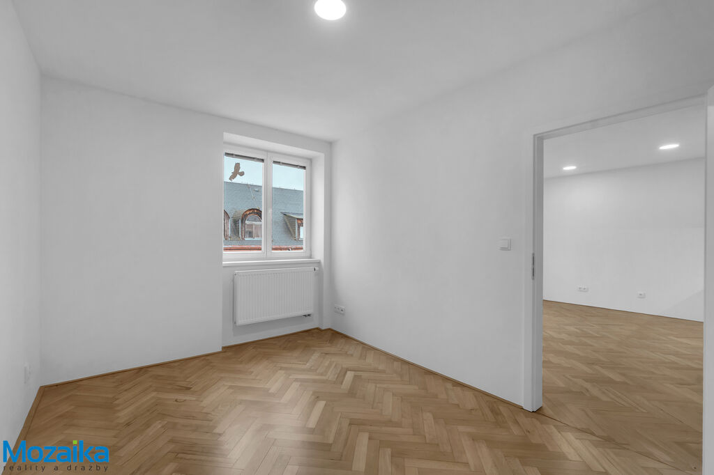 Celý byt prošel kompletní zdařilou rekonstrukcí v moderním stylu. Na podlahách se střídají krásné zachovalé parkety s velkoformátovou dlažbou, která dodává prostorům luxusní vzhled. Každý detail byl pečlivě promyšlen tak, aby vám bydlení přinášelo maximální komfort a radost. K bytu náleží také praktická sklepní kóje v suterénu domu a bonusem je možnost využívání společného dvorku za domem, což je v centru města skutečnou vzácností.