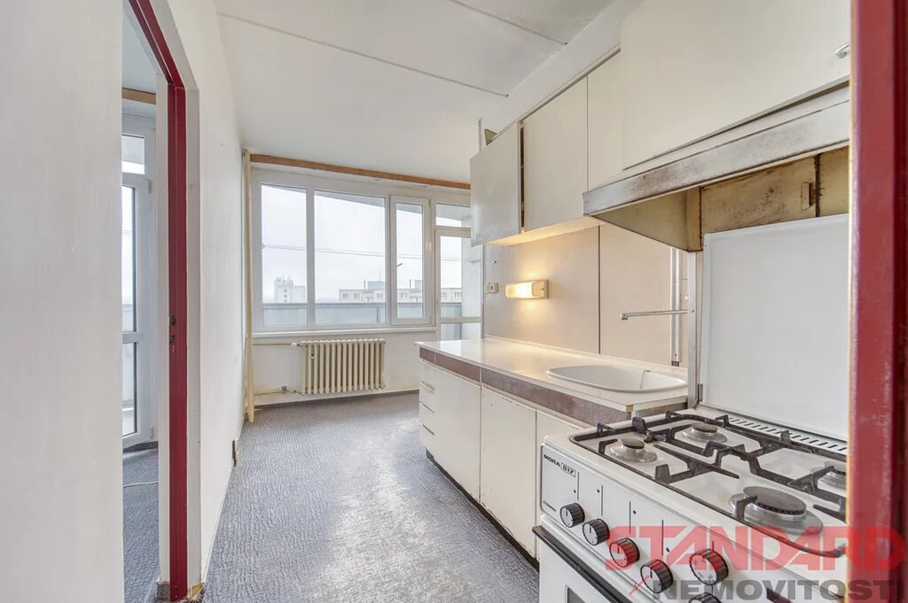 Byt se nachází v 7. patře modernizovaného panelového domu se 14 podlažími a dvěma novými výtahy, díky čemuž nabízí krásné výhledy a dostatek denního světla.