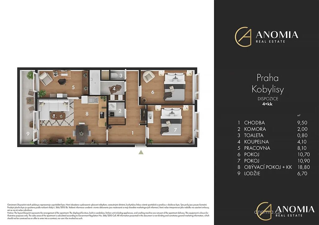 V bytě dále najdete 3 samostatné, neprůchozí pokoje, které lze využít jako ložnici, dětské pokoje nebo pracovnu, koupelnou, oddělené WC a technickou místností s místem na pračku i sušičku. Koupelna zaujme elegantním designem – velkoformátové obklady, podsvětlené niky a kvalitní materiály vytvářejí nadčasový a harmonický dojem.