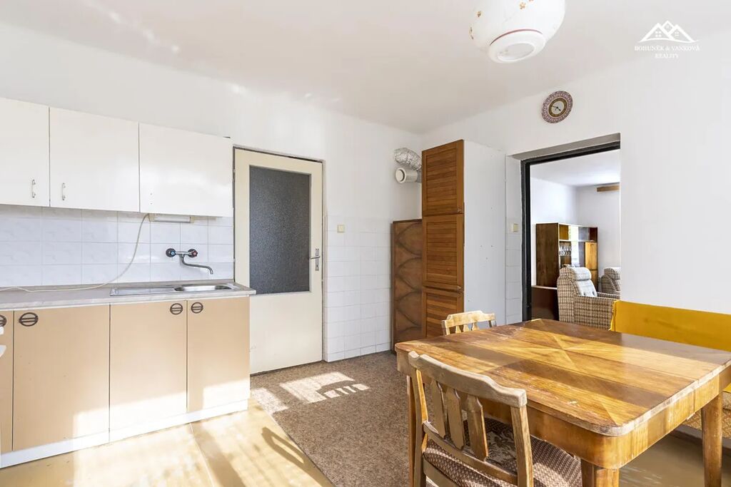 Prostorný rodinný dům se může pochlubit velice udržovaným, i když původním stavem. Částečně podsklepený dům se dvěma nadzemními podlažími tvoří prostorná vstupní chodba, kuchyně s kuchyňskou linkou a jídelním koutem, obývací pokoj, ložnice, koupelna s vanou a toaletou, komora, po schodech se dostaneme do druhého patra, které je částečně přepažené obytnou místností a půdou. Z druhého patra se dostaneme na prostornou terasu s výhledem do zadní části zahrady.