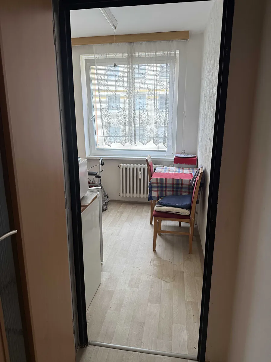 Nabízím k prodeji byt 1+1 v družstevním vlastnictví, který se nachází ve 4. patře panelového domu s možností upravit byt na 2+kk. Byt je o výměře 40 m2 a je ve standartním stavu s umakartovým jádrem. Ze vstupních dveří se vejde do chodby, kde před vámi je vstup do hlavního obývacího pokoje o výměře 20 m2. Napravo od vás je malá komora. Nalevo se jde do samostatné koupelny a samostatné WC. Za koupelnou se vejde do samostatné kuchyně. Menšími stavebními úpravami by se dalo tuto současnou kuchyň probourat do obývacího pokoje a udělat z tohoto bytu dispozici na 2+kk, kde by se z nynější kuchyně udělala samostatná ložnice a obývací pokoj by byl s kuchyňským koutem. V suterénu domu náleží k bytu poměrně velký sklep.