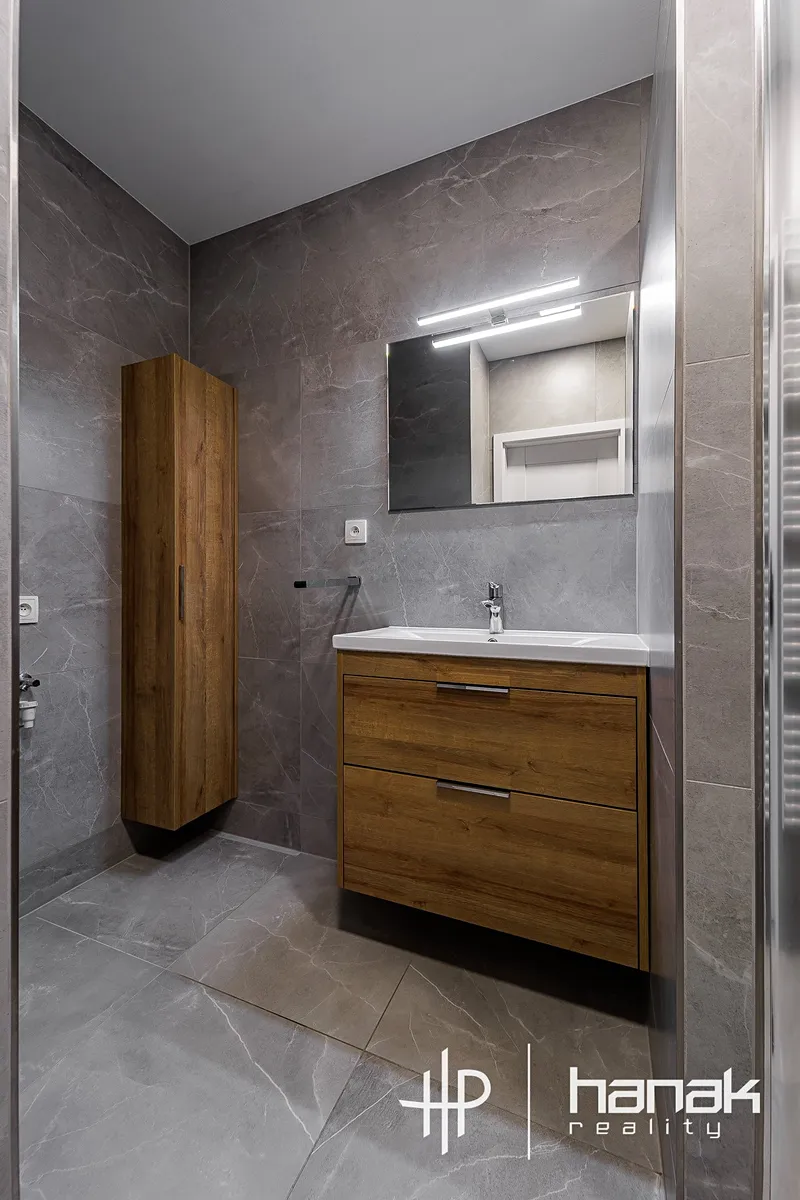 Jednotka prošla kompletní rekonstrukcí a její interiér je moderně laděn v duchu minimalismu.