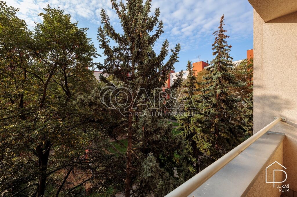 Součástí bytu je lodžie o velikosti 3.2 m² orientovaná do klidného vnitrobloku se zelení a sklepní kóje v suterénu.