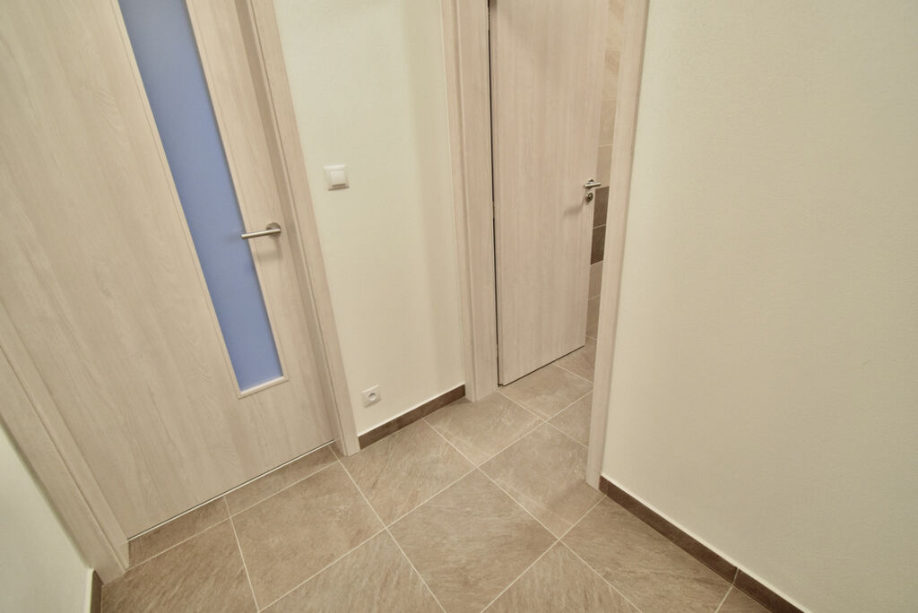 Byt se nabízí částečně vybavený. Kuchyňská linka disponuje vestavěnou lednicí s mrazákem, myčkou, mikrovlnnou troubou, elektrickou troubou, sklokeramickou deskou a digestoří. V koupelně je sprchový kout, umyvadlo se zrcadlem a toaleta.