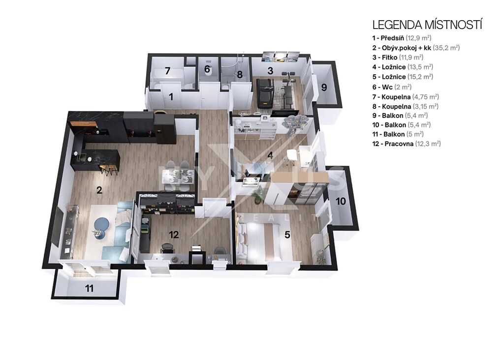 Tento výjimečný byt 5+kk s podlahovou plochou 119,6 m² se nachází v posledním 4. patře a díky své dispozici nabízí maximální soukromí. K bytu náleží tři balkony, ideální pro ranní kávu, večerní sklenku vína nebo pěstování bylinek. Na stejném patře, před bytem, je k dispozici i praktická komora, kam snadno uložíte sezónní věci či sportovní vybavení. Pokud by Vám ani to nestačilo, tak je v domě ještě k dispozici společná kolárna/kočárkárna.