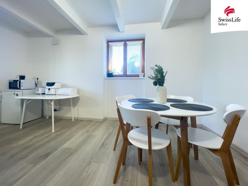 V prvorepublikové vile se prodává suterénní byt, který před rokem prošel kompletní rekonstrukcí. Patří k němu sklep, kóje na půdě a velký dřevník na společné zahradě, která má 1000 m2.