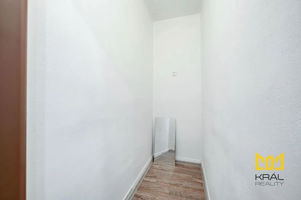 Dispozici bytu tvoří vstupní chodba s úložným prostorem, kuchyň s dostatkem místa pro vytvoření menšího obývacího koutu nebo jídelního stolu. Kuchyňská linka je sektorová, vybavená základními spotřebiči – kombinovaný sporák a digestoř.