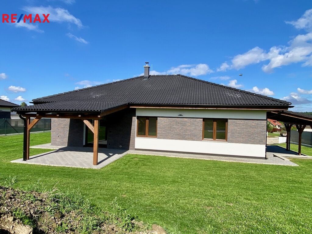 Bezbariérový dům je kompletně dokončen a částečně vybaven (kuchyň se spotřebiči). Je kolaudován jako bungalov o dispozici 4+kk. Užitná plocha obytné části je 127 m2 + cca 24 m2 užitného prostoru na půdě. Na světlý obývací pokoj s kuchyňským koutem o velikosti 44 m2 navazuje terasa se vstupem dále do zahrady. Tři samostatné neprůchozí ložnice mají vstup z centrální chodby domu a dále je zde koupelna s vanou a WC, technická místnost, druhé WC se sprchou, chodba, předsíň.