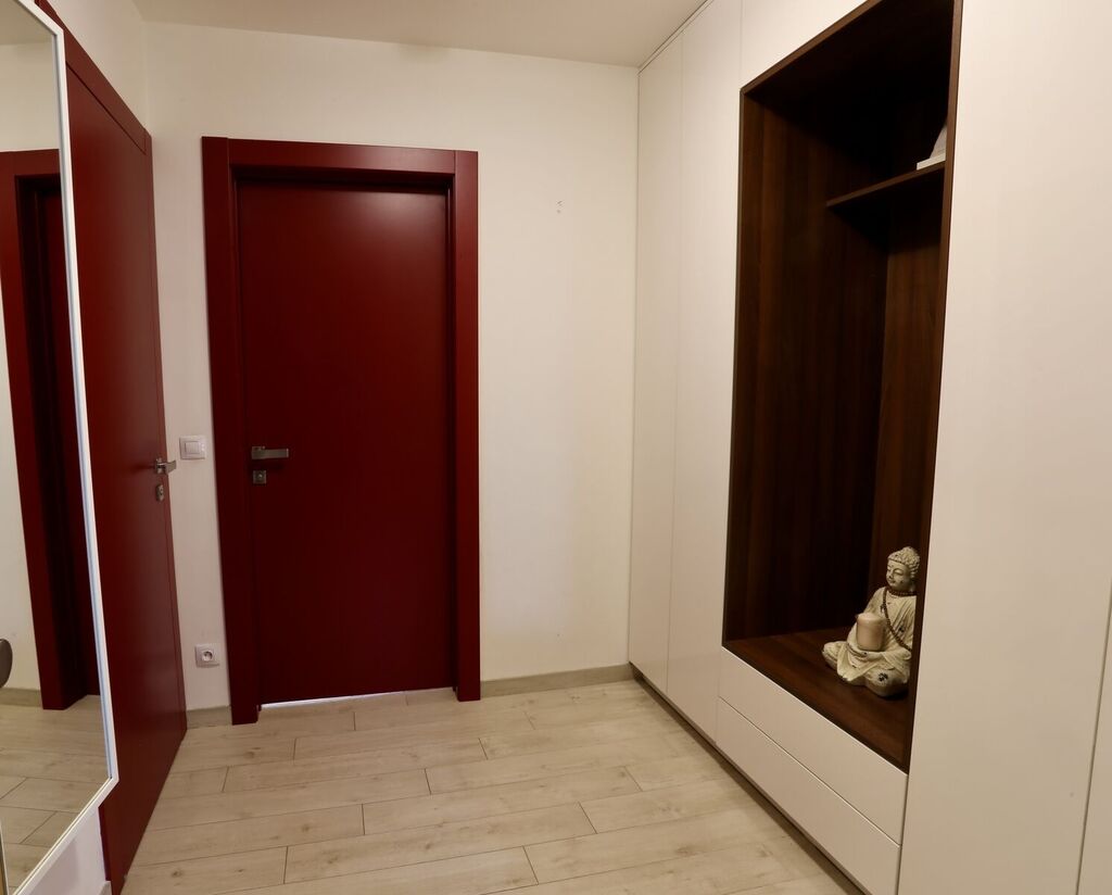 • červeně lakované bezfalcové dveře italské značky Ferrero Legno s magnetickými zámky