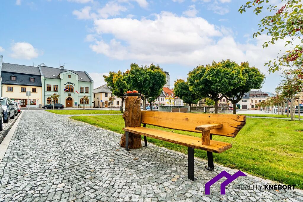 Byt se nachází ve druhém patře rodinného domu na náměstí Míru v centru Jablonného v Podještědí.