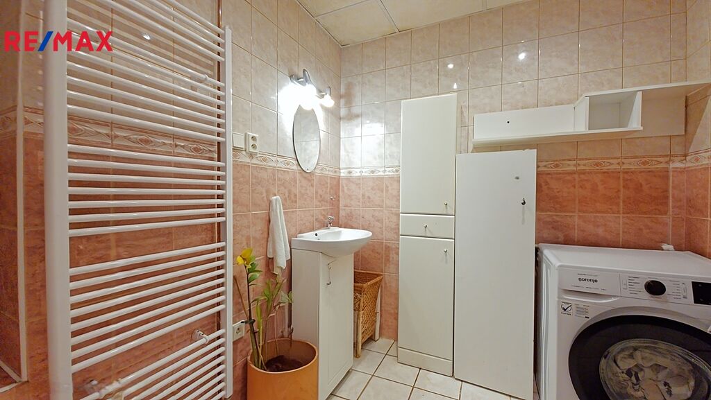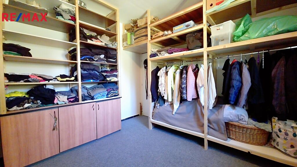 Dostatečné úložné prostory zahrnují sklep o velikosti 15 m² a garáž, která nabízí prostor pro uskladnění potřebných věcí a vozidel. Dům je napojen na veřejný vodovod a odpad je řešen septikem. Elektřina je k dispozici ve fázi 230 V a s 25A jističem, což splňuje běžné požadavky moderního bydlení.