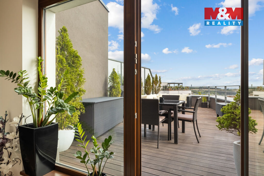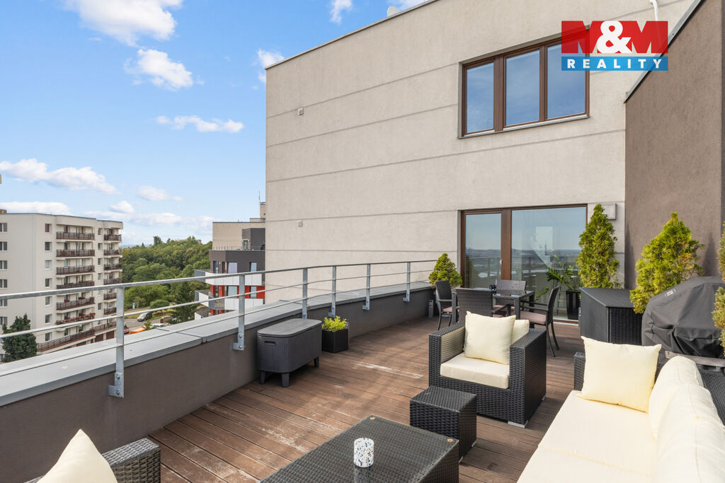 K bytu náleží terasa o rozloze 30 m² s překrásným výhledem, ideální pro relaxaci a zábavu.