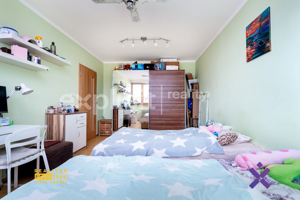 Popis bytu: Byt s nádherným výhledem do vnitrobloku a dispozicí 2+kk je situován v 4. podlaží rezidenčního cihlového domu. Obývací pokoj s kuchyňským koutem o velikosti 17 m2 a prostorná ložnice o velikosti 17,50 m2. V bytě se dále nachází koupelna se sprchovým koutem a toaletou. V obývacím pokoji, chodbě a ložnici je plovoucí laminátová podlaha v dekoru dřeva. V ostatních místnostech je dlažba. Výhled do vnitrobloku vám zajistí velkorysá plastová okna v dekoru dřeva. K bytu náleží i sklepní kóje. V domě jsou instalovány nové vchodové dveře s kamerovým systémem a v roce 2025 proběhla výměna stoupaček.