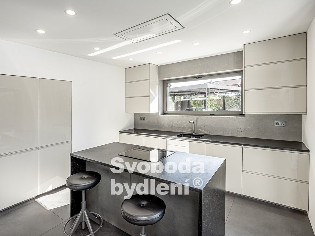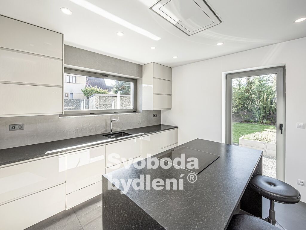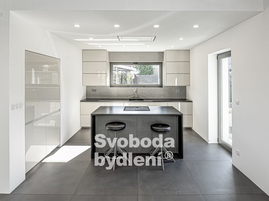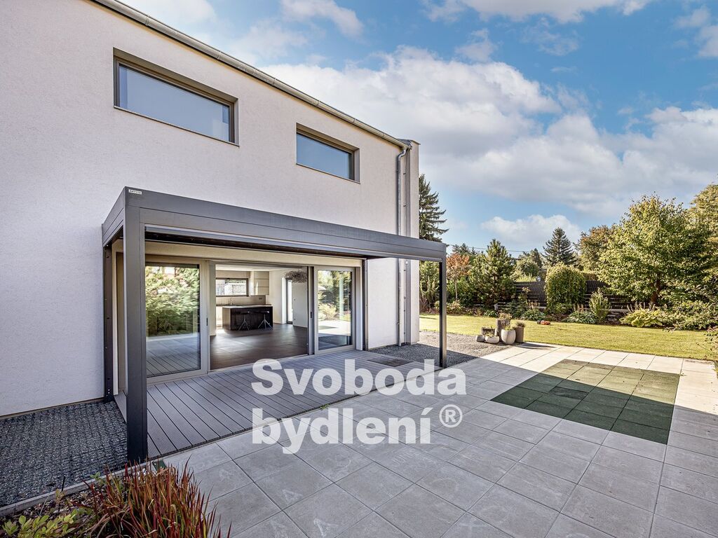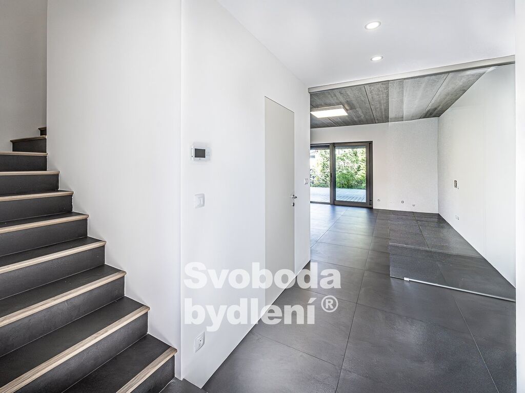 Technické informace: Pozemky celkem 678m2, z toho zastavěná plocha 89m2 + 21m2, užitná plocha domu 161m2. Dům postavený z YTONGu, zatepleno 20cm polystyrenu včetně izolace proti vzniku tepelných mostů, Energetická třída B, střešní krytina Tondach - černá pálená taška, hliníková okna i dveře s izolačním trojsklem, mramorové parapety, zavedena voda, elektřina i kanalizace (plyn není zaveden), vytápění tepelným čerpadlem voda/vzduch s vnitřním modulem (all-in-one) NIBE VVM320, podlahové vytápění v obou podlažích, jednotka v zimě topí a v létě chladí; sanita Villeroy & Boch, vodovodní baterie Hansgrohe, designové osvětlení Catellani&Smith, Artemide a Rendl Studio, Internet/wifi modem; podlahová krytina v 1. NP je velkoformátová (90x90cm) italská dlažba, ve 2. NP plovoucí podlahy; obklady zakončené hliníkovými lištami, všechny interiérové (bezfalcové) dveře mají zapuštěné panty a magnetické jazýčky. Automatická závlaha (kapačka) a robotická sekačka. Na prodej je polovina dvojdomu, domy mají samostatné obvodové zdi a jsou navíc zvukově odděleny polystyrenem. Měsíční náklady na provoz domu jsou cca 5.000,-Kč (elektřina + voda).